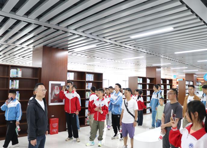 哇!图书馆好大啊,书架上摆满了厚厚的书,从文学到科学,应有尽有!梁斌副馆长亲自给我们讲解,他说:“每一本书都是一艘船,能带你们驶向知识的海洋。”他鼓励我们多读书,树立远大的理想。在校园里漫步,看着教学楼、操场、花园,同学们都惊叹:“太美了!我以后也要在这里读书!”