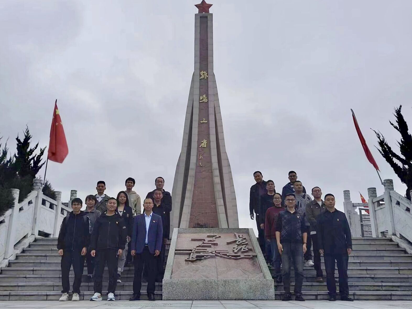在纪念碑前合影