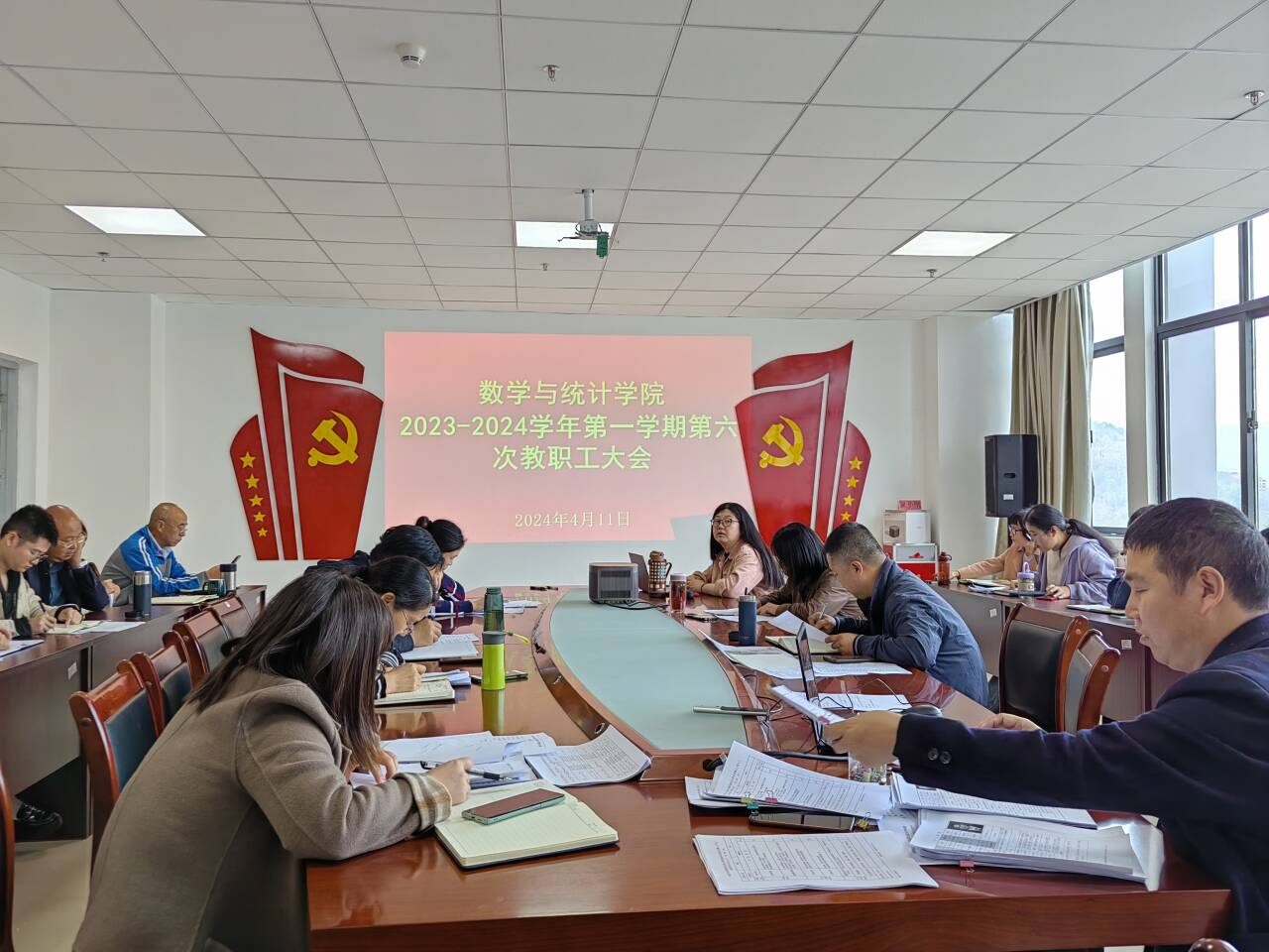 4月11日下午,数学与统计学院在学院奥学楼521会议室召开了第6次教职工会议。会议由院长宁宝权主持,副书记张华伟出席,全体教职工参加。