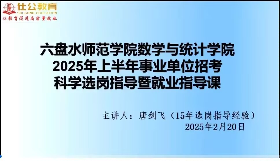在本次线上指导会上,唐剑飞校友结合自身创业经历与专业知识,详细解读了2025年贵州省事业单位招考、贵州省省考、三支一扶及西部计划等基层项目的政策动向与备考策略。他特别针对选岗技巧、备考规划及面试准备等关键环节,为同学们提供了切实可行的建议,助力他们在激烈的就业竞争中脱颖而出。