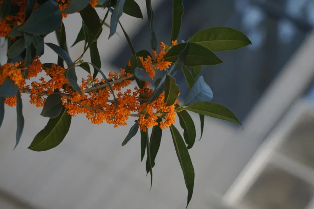 桂花,又名岩桂等,木犀科,木犀属。常绿灌木至小乔木,花淡黄、黄或橘红色,浓香,花期九月到十月。我国传统十大名花之一,其清可涤尘、浓能致远的花香和气质备受人们赞颂,是崇高、美好、吉祥的象征。