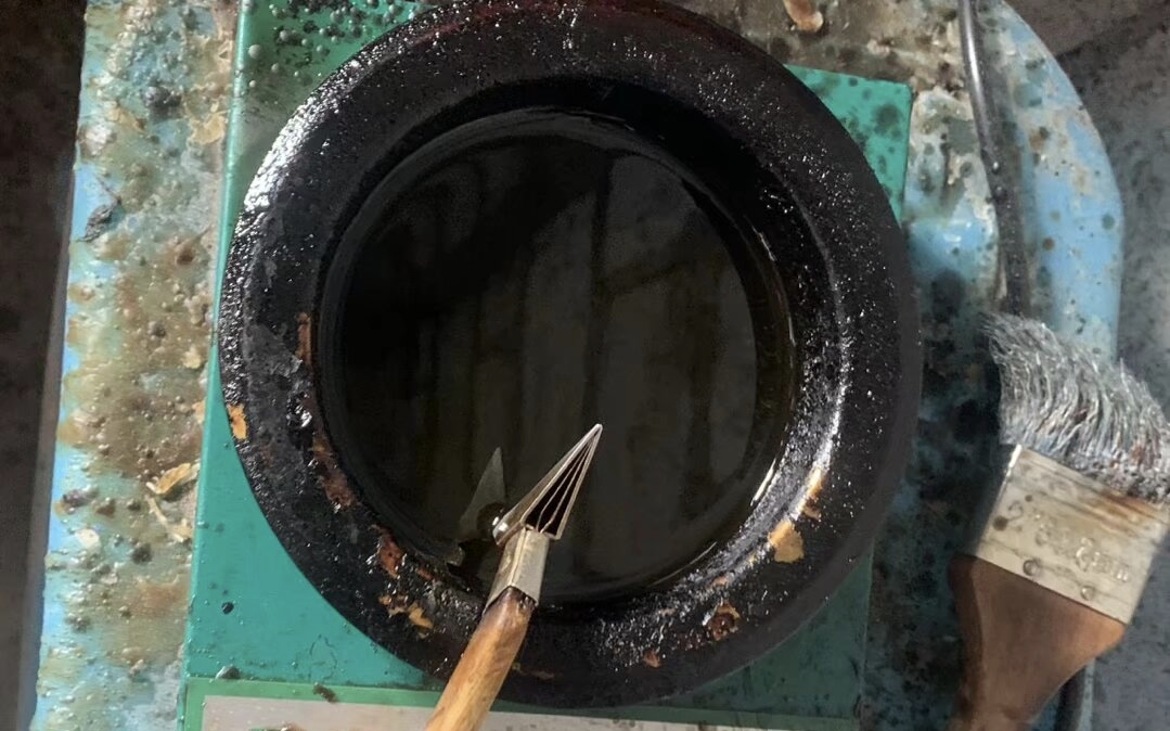 (文脉寻踪乡行队熬制蜡液的铜锅)