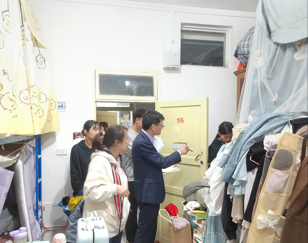 检查人员在学生公寓管理员的协助下,深入公寓,逐楼层、逐房间的深入检查。在检查过程中,刘开盛书记强调:开展宿舍检查工作,是为了进一步增强学生的安全意识,引导学生养成良好的生活习惯。大家不仅要保证宿舍的清洁卫生,还要在日常生活中注意财物安全、用水用电安全和人身安全等。刘开盛书记要求:一是消防安全方面,要注意宿舍电线老化存在的安全隐患,一经发现,要及时报修;禁止在寝室使用大功率电器,不良大功率电器会给宿舍及楼栋埋下更大的安全隐患。二是防范意识方面,禁止学生外宿,这是对自身安全的一个重要保障;防范网络诈骗,禁止将自己的银行卡、身份证、电话卡信息向别人透露。三是卫生整洁方面,要爱护寝室卫生,共同营造一个安全舒适的生活学习环境。在检查过程中,学生科科长张俊霞强调:宿舍门上禁止乱贴乱画,在宿舍禁止使用取暖器、小电锅、电老虎等大功率电器,提升自身的安全防范意识;各个宿舍要保持宿舍卫生干净整洁,行李、衣服、床铺要摆放整齐,优秀寝室的创建需要大家共同努力。
