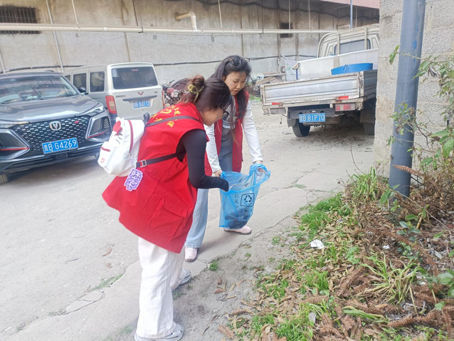 3月27日,艺术学院2023级美术学2班团支部于黄土坡街道德南街106号开展社区服务志愿活动。本次活动主题为“环境保护你我他,绿色城市靠大家”。社区工作人员向志愿者们宣传自然环境保护知识后,大家分小组在社区开展垃圾清理活动。本次活动提升同学们环保能力,有效改善社区环境。大家齐心协力,为打造美好绿色社区全力以赴,让环保理念落地生根。(供稿/王倩 芒雪草 编辑校对/周海云 审核/吴胜柱)