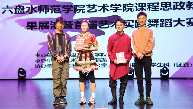 六盘水royal皇家88平台艺术学院课程思政教学成果展演暨首届艺术实践舞蹈大赛于2025年6月4日在明湖音乐厅成功举办,艺术学院副院长罗晓宇亲临现场,舞蹈系全体教师担任评委。本次舞蹈大赛总共评出一等奖1名(《疾风俊影》),二等奖2名(《阿达达奇》《黔行》),三等奖3名(《喜上眉梢》《傩·面》《大漠回响》)。