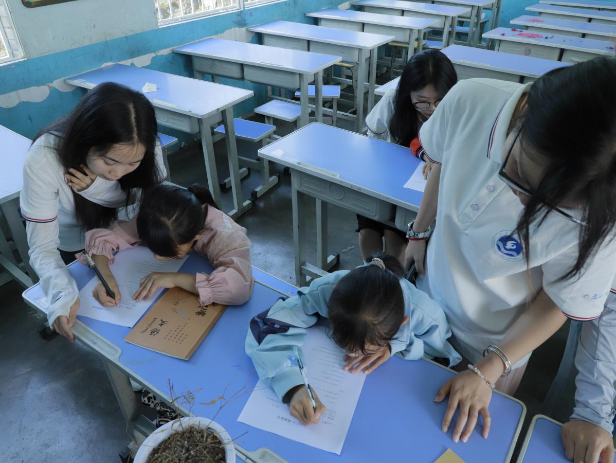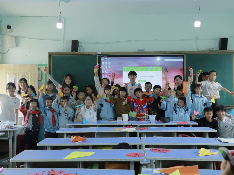 团队将苗族剪纸文化与心理辅导巧妙融合,通过“故事接龙+动手创作”的互动模式,让孩子们在对折、裁剪的过程中释放天性。在这一过程中,成员们不做“标准答案”的评判,而是认真倾听每个作品背后的奇思妙想。