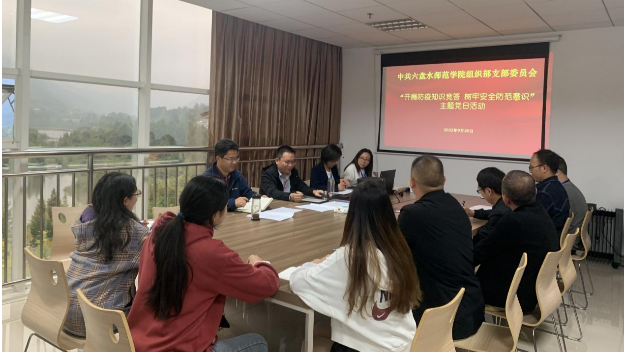 9月26日,为深入贯彻落实党中央、省委、市委和学校党委关于疫情防控工作的有关精神,充分发挥全体党员在疫情防控工作中的先锋模范作用,组织部党支部举办了以“开展防疫知识竞答,树牢安全防范意识”为主题的主题党日活动,支部全体党员、预备党员、发展对象参加。