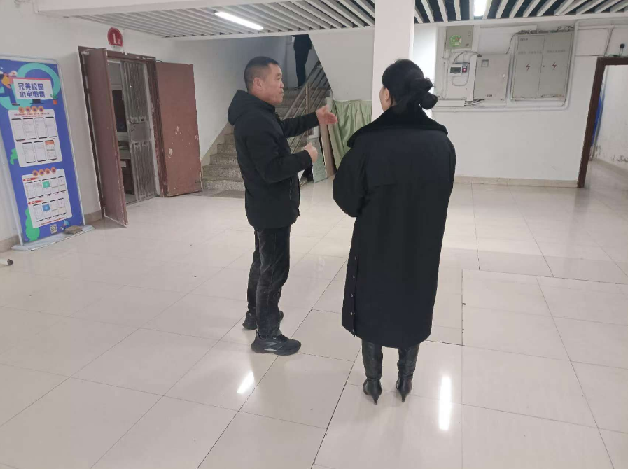 寒冬已至,气温骤降,用电用气增加,火灾频发。为了预防我校学生公寓火灾事故的发生,防患于未然,进一步加强我校学生宿舍消防安全管理工作,增强学生安全意识,保卫处处长余征同志带领副处长陈士文及应急科同志于2024年11月26日对12幢学生公寓进行了消防安全检查。