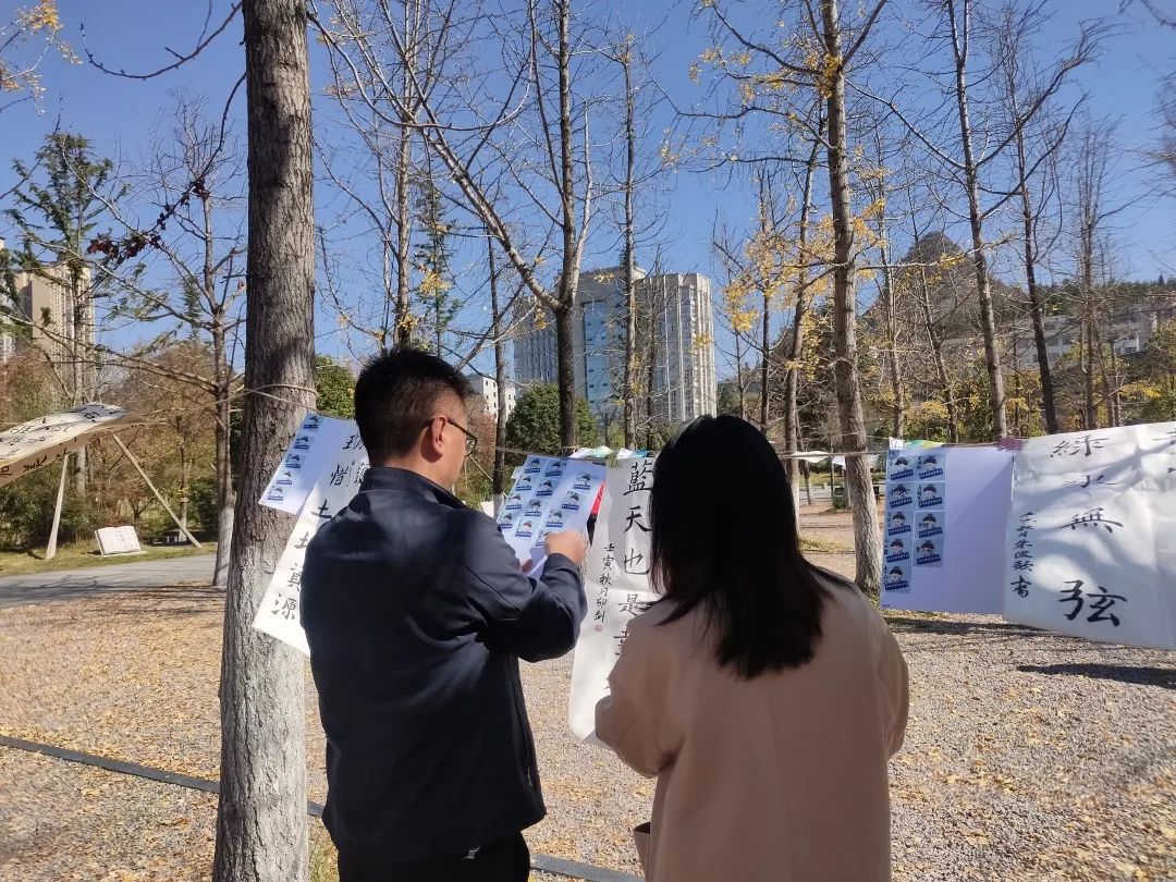 活动过程中,志愿者们耐心引导师生扫码登记并发放投票贴纸,让参与者在贴纸上写下姓名后将其贴在自己心仪的作品旁。随着志愿者们的热情宣传,活动反响良好,前来观展的师生络绎不绝,他们在书画作品前驻足观赏、细心品味,对参赛者的书画技艺予以肯定与鼓励,现场书香满溢、气氛活跃。