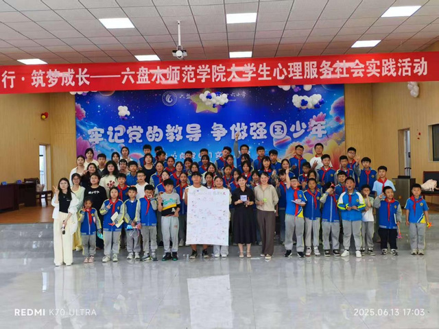 6月13日下午,教育科学学院《心理健康教育》应用型课程团队负责人万春副教授带领本学院大学生志愿者,赴钟山区第十六小学开展“童心同行·筑梦成长”心理服务社会实践活动。活动旨在践行应用型人才培养理念,服务地方基础教育,为小学六年级及“3+1”群体学生提供心理支持,同时锤炼大学生实践能力。