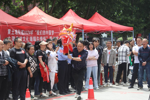 为保证活动质量,早在一周前,同学们就《舞龙舞狮》提前进行了编排。据了解,编排主要分为摇旗、舞狮、双节棍以及舞彩带龙等四个内容。活动开始时,同学们身着表演服装,以摇旗为开端,祝愿社区的工作能够像旗子一样,迎风飘扬;以舞彩带龙为结尾,祝愿社区的居民生活能够团团圆圆,幸福美满。表演结束后,为提升民族文化认同感和自豪感,体验“中华民族一家亲”的浓厚氛围,同学们先后参加了端午知识抢答、包粽子、漆扇体验、香包制作、趣味接力赛等活动,进一步加深了同学们与社区居民之间的情感交流。