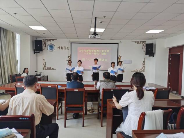 6月28日上午,文学与新闻学院教工党支部联合学生党支部在奥学楼617开展“一支部一特色”建设之迎”七一“诗歌诵读活动。