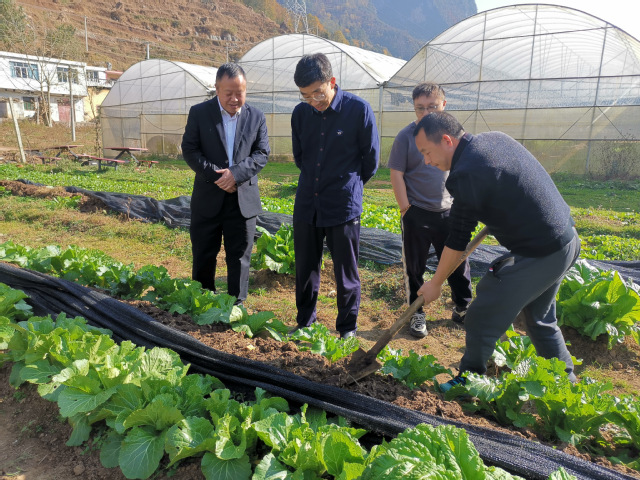 11月28日下午,何林校长一行到水城区玉舍镇大田村调研指导乡村振兴帮扶工作,学校党委委员、组织部部长向虎跃,生物科学与技术学院党委书记王家理陪同调研。