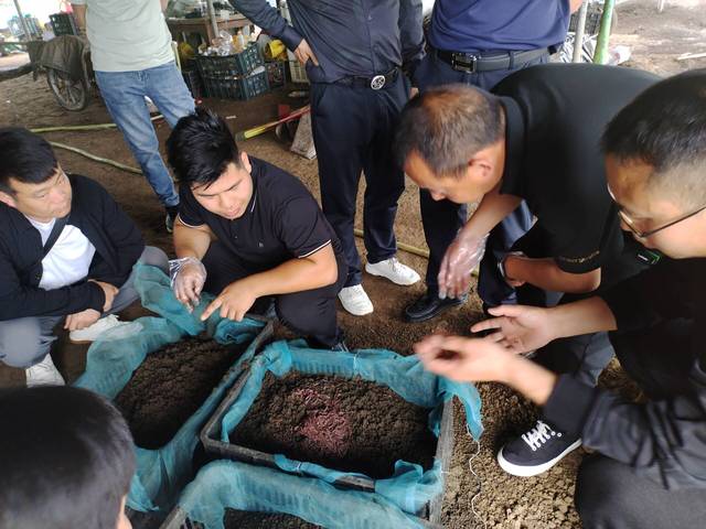 5月9日下午,考察组一行在南宁市灵山县蚯蚓养殖基地详细考察蚯蚓品种习性、养殖技术、土壤、温度、湿度、粪源、生长周期、资金投入与产出以及市场销售等具体情况并与基地负责人进行了学习交流。